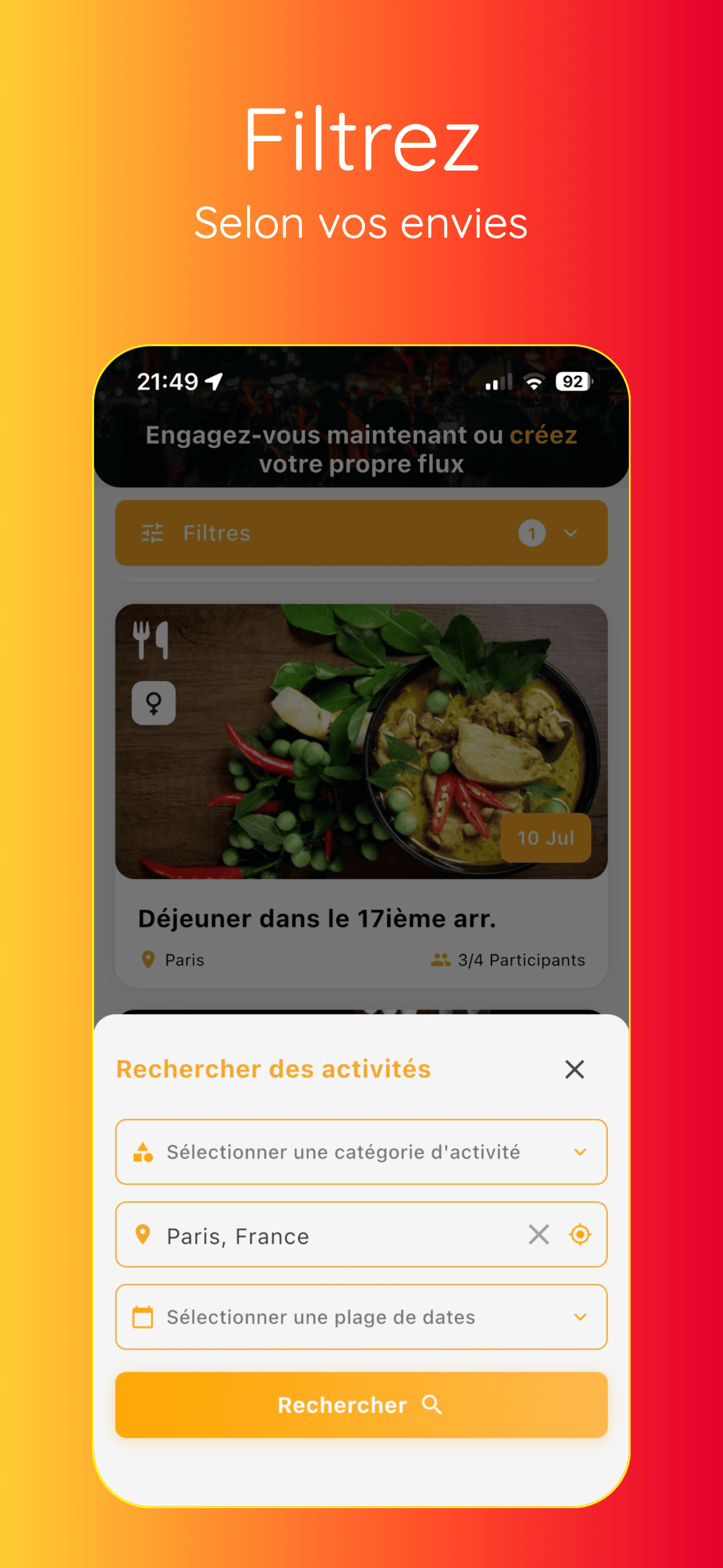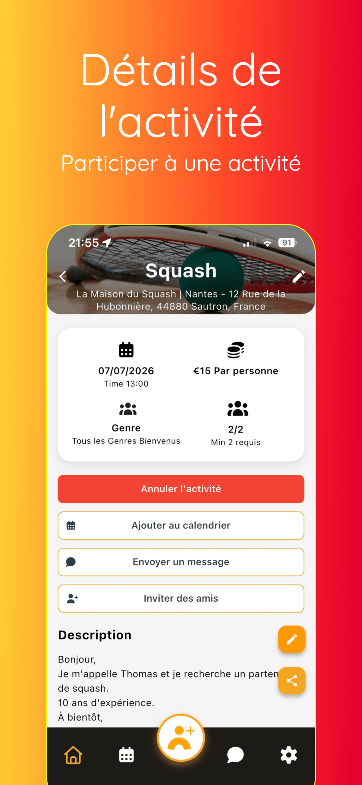 Choisissez une activité ou proposez-en une vous‑même. Djibble n’est pas un réseau social : pas de likes, pas d’abonnés, juste des activités à partager.